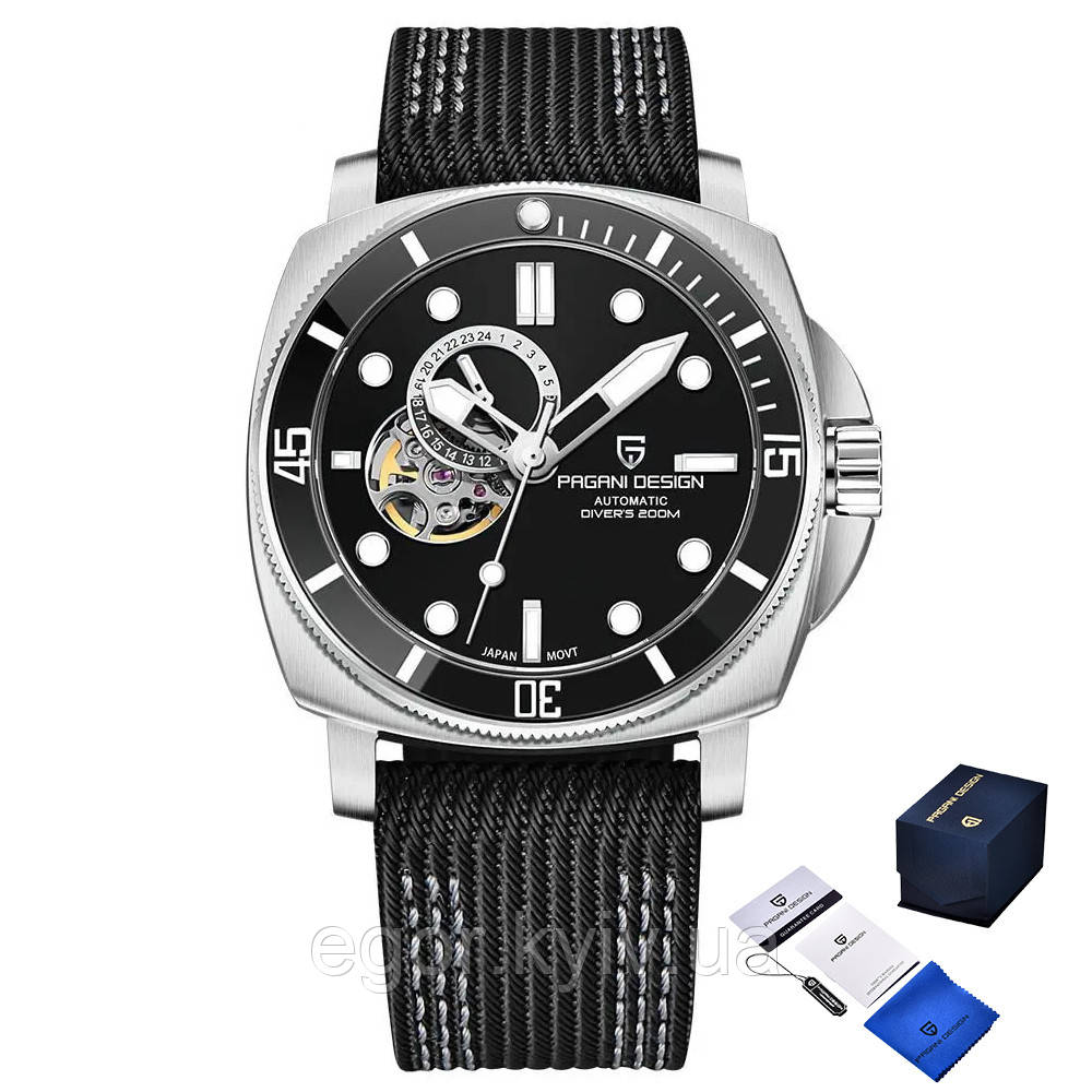 Годинник Pagani Design PD-1736 Silver-Black поєднує вишуканий стиль і функціональність. Завдяки механічному механізму з автопідзаводом, скло зі сапфіру та водонепроникності до 200 м, він стане надійним супутником у будь-яких умовах. Корпус з нержавіючої сталі зі сріблястим покриттям гармонує з чорним нейлоновим ремінцем. Годинник має квадратну форму, а циферблат оснащено індикаторами годин, хвилин і секунд, що робить його легким у використанні. Люмінесцентна підсвітка забезпечує зручність у темряві. Вага годинника складає 99 г, а довжина ремінця – 22 см. Підходить для чоловіків, прекрасно вписується в стиль casual і класичний. Гарантія на годинник – 12 місяців. Вироблено в Китаї.
