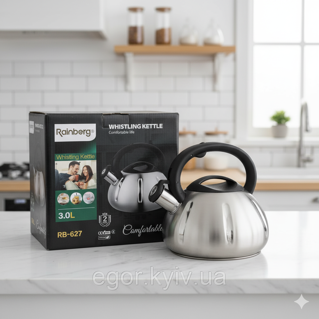 Чайник для електричних і газових плит Rainberg RB-627 3 л зі свистком, з неіржавкої сталі